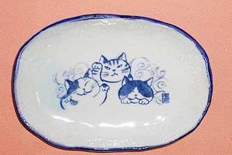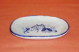 |笑い猫「ミニだえん皿」青